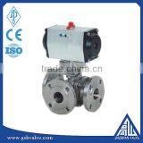 Pneumatic 3 Way SS304 Flange Ball Valve