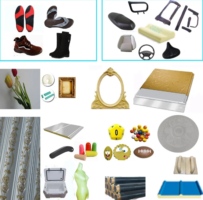 steering wheel, bumper, integral skin, fast rebound, slow rebound, fitness equipments, thermal insulation material, acoustic panel, bicycle cushion, car seat cushion, mattress, hard foaming, refrigerator material, medical appliances, insole, soles, etc.