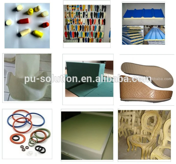 Pillow, steering wheel, bumper, integral skin, fast rebound, slow rebound, fitness equipments, thermal insulation material, acoustic panel, bicycle cushion, car seat cushion, mattress, hard foaming, refrigerator material, medical appliances, insole, soles, etc.