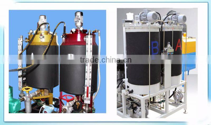 2) Mixing device: using an L structure, the pouring head has a function of self cleaning; the pouring mouth can be adjusted. Under high pressure, the materials will turn into mist and mixing uniformly.