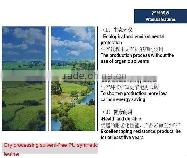 Environmental solvent-free leather production technology mainly refers to have the surface blade coated through or nonwovens ,and solid content of blade coating foaming layer would be 100% after drying,the two-component PU materials directly stick to raw materials like aplit leather base cloth to produce composite leather which is widely use in shoes ,garment,sofa,bags, suitcase,belt and other field.