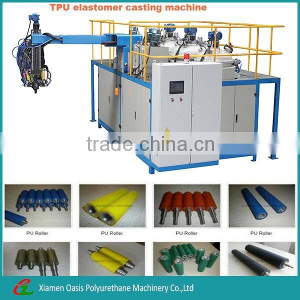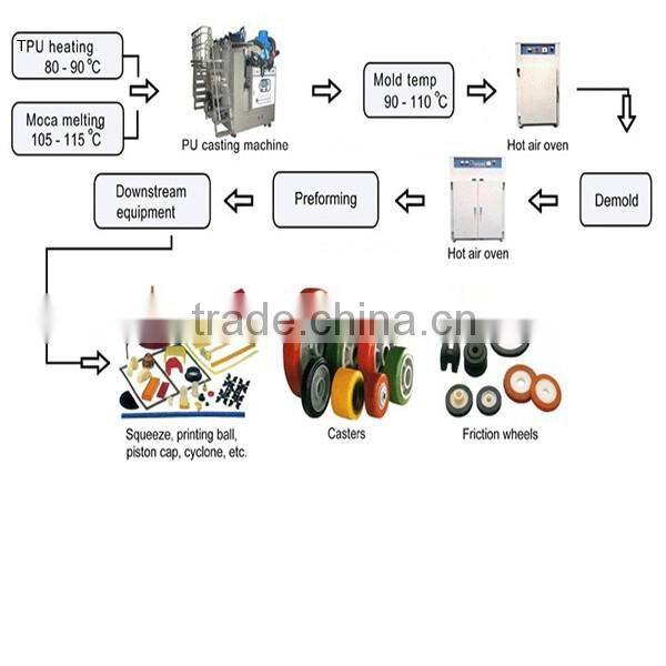 Three components thermoplastic ployurethane elastomer casting machine.