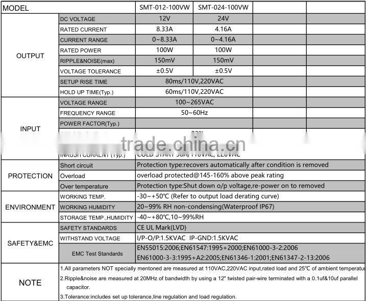 12v 100w led power supply driver with ce rohs ul approval