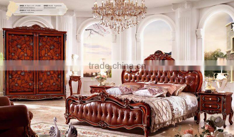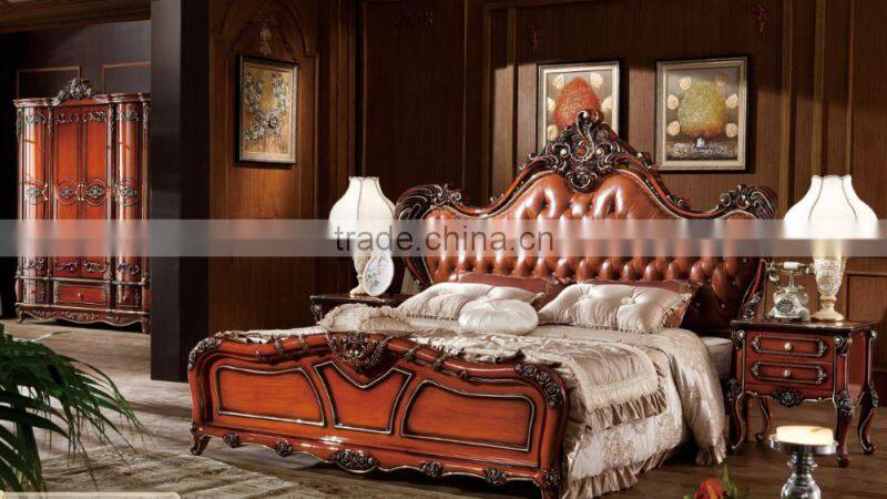 Classic Bedroom Furniture of Wood Carving Solid Wood Queen Bedroom Set