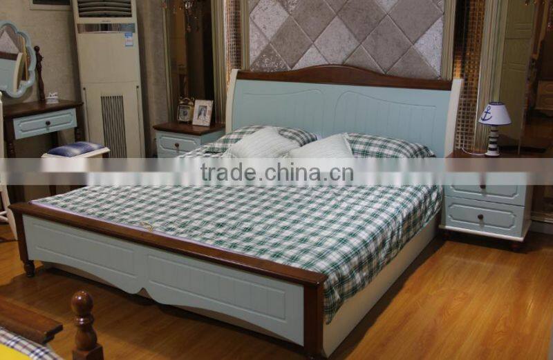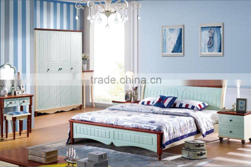 Mediterranean Style Prefab House New Design Solid Wood Blue Bedroom Furniture Set