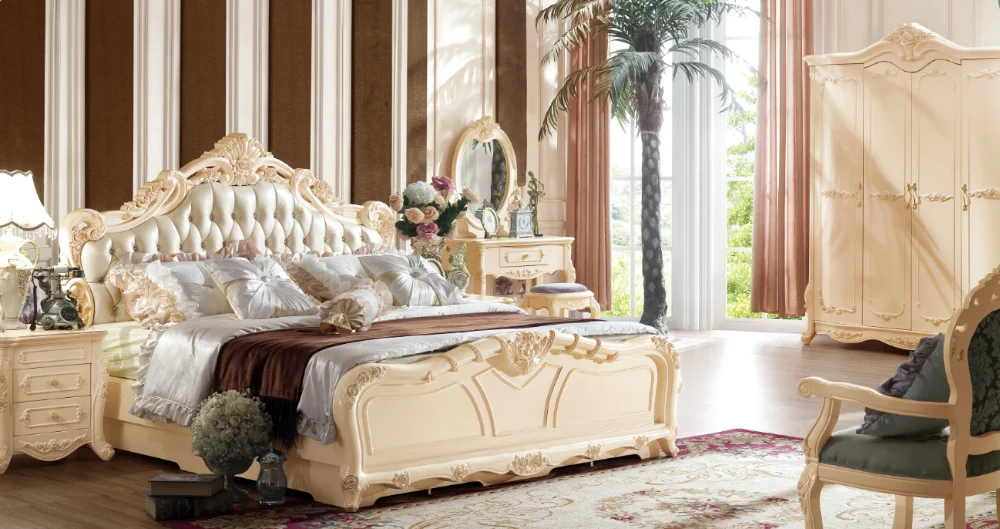 2016 Antique Bedroom Furniture Set Used Full Solid Wood With Carved to be Finished