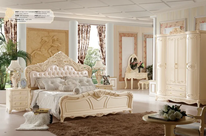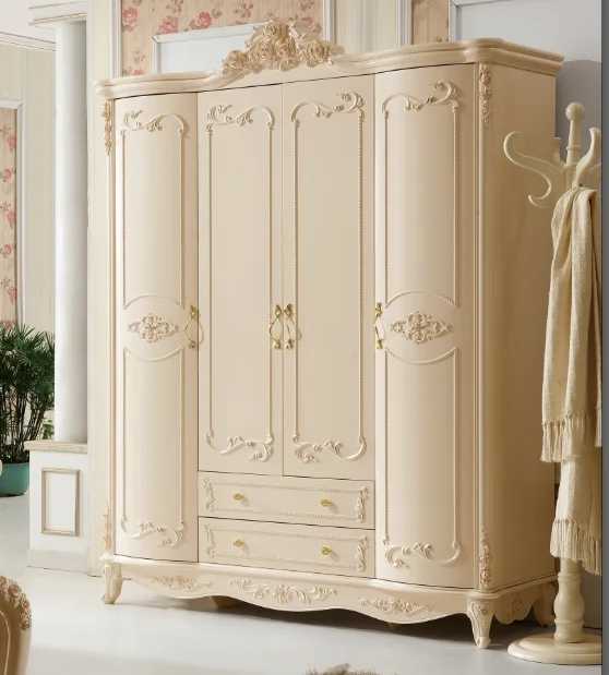 Luxury French Fancy Antique Design Bedroom Furniture Sets With Solid Wood Wardrobe