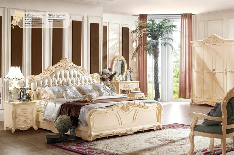 Home > Products > Home use furniture series > 2016 The Antique Luxury King Size Wood Bedroom Furniture Set/french Style Bed