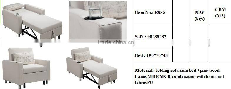 Hot Selling White Fabric or pu Material Folding Sofa Cum Bed Design