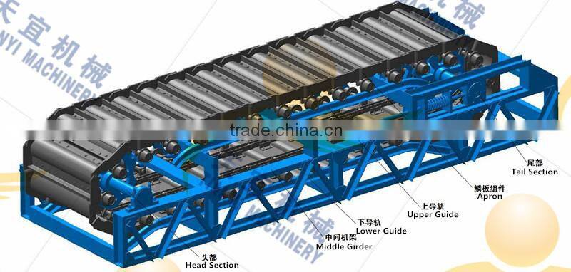 1 Apron conveyor is a kind of slat conveyor, widely used in mine, metallurgy, cement etc.
