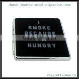 2014 High Quality Black Suede Leather Metal Cigarette Case Box Wallet With Elastic Holder