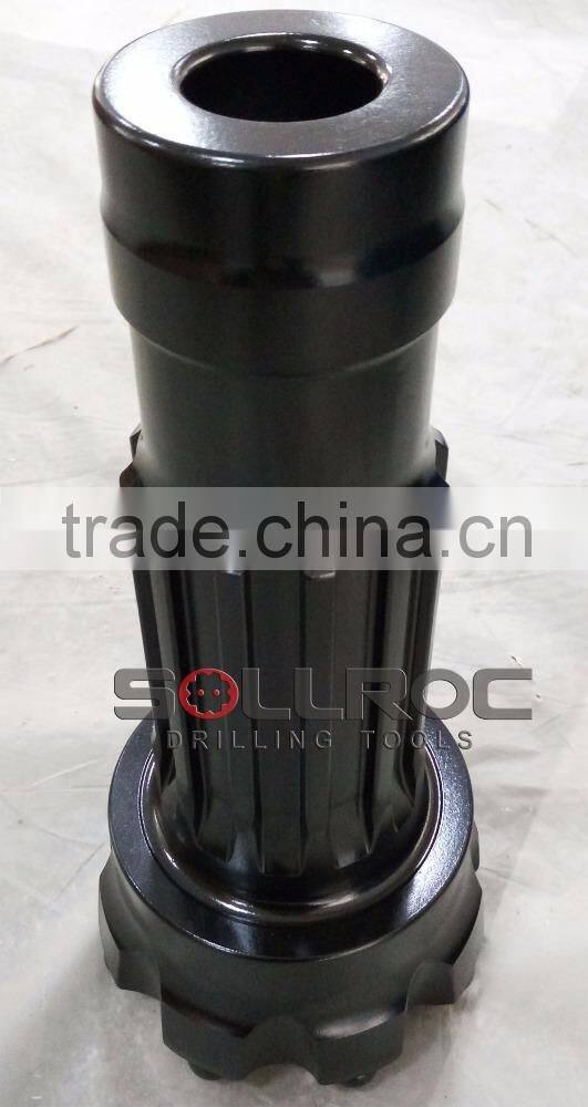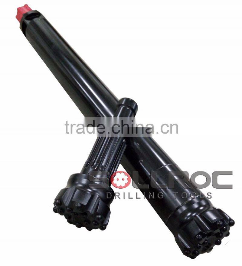 DTH drilling tool is widely used in underground mining, quarries, hydraulic and Hydro-Power Engineering, water well drilling, Mineral exploration, anchoring hole drilling, geothermal engineering, Subway excavation, another civil engineering. it has the advantage of high flatness, smooth hole wall, high rigid of drill rod and hammer, independent of high axial thrust, no limit of drilling depth, low cost of devices and easiness to maintain. At the drilling hole of dia.105mm-dia.254mm, a plenty of the DTH drilling tools are used.