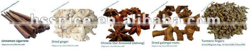 our products includind Cassia, Star Aniseeds, Dry Ginger Whole,Galangal Roots,Turmeric Fingers,White Pepper,etc.