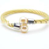 Fashion Braided Cable Stainless Steel Bangles With Pearls