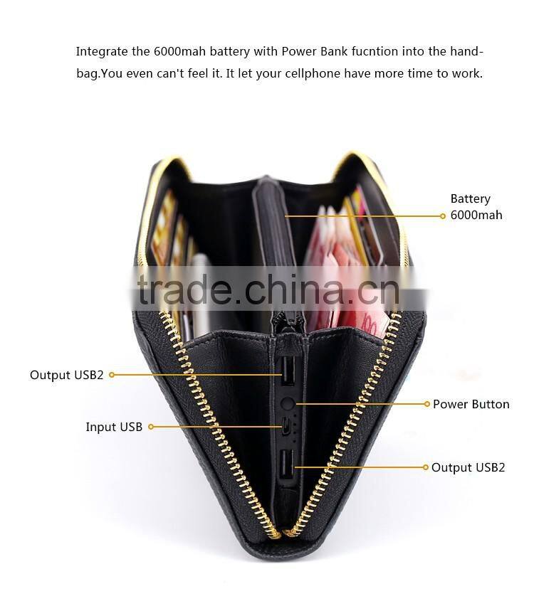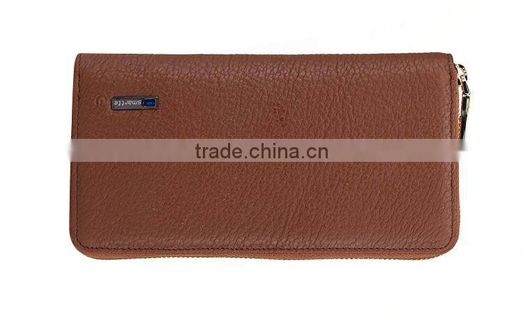 Security genuine leather money wallet anti-theft alarm with power bank and bluetooth