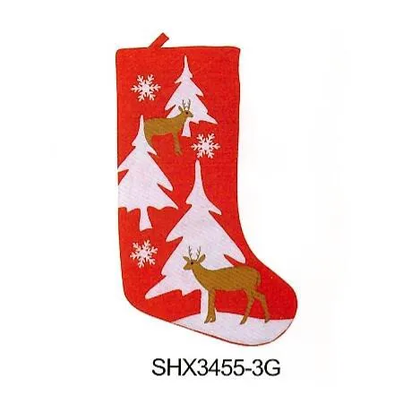 19" Non-woven Red Christmas Stocking With Tree and Reindeer