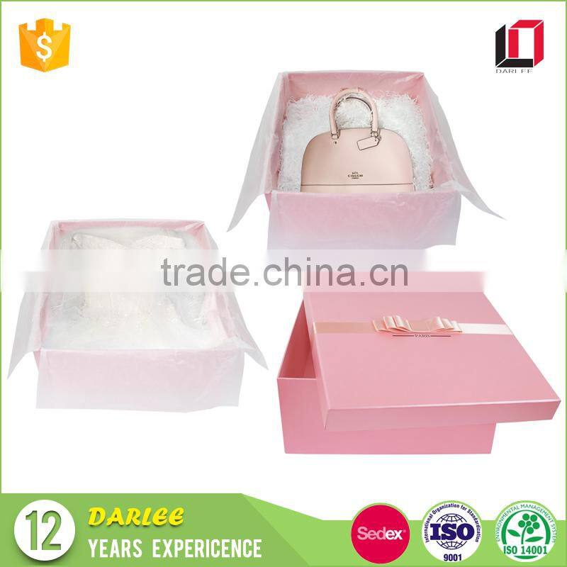| Product Name | High quality cardboard paper pink luxury ladies bag packaging gift box with ribbon lid |