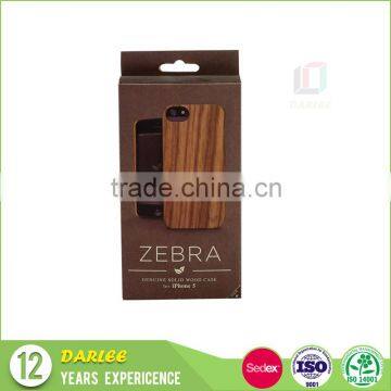 ShenZhen wooden color book shaped mobile phone case packaging box with hang hole |