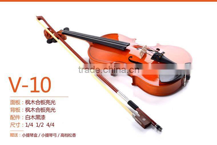China handmade all maple plywood high gloss with case,bow&rosin size :4/4,4/1,1/2 violin;