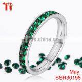Online Shop China Key Ring Keys Stainless Steel Engagement Ring Diamond Custom Green Crystal Stone Bands for Women May