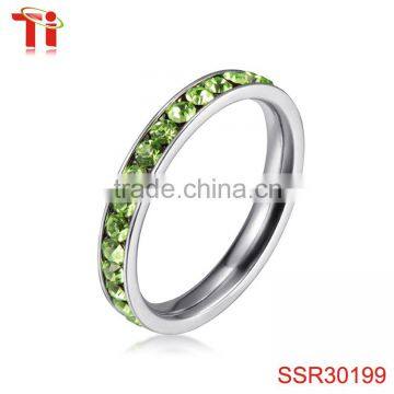 316L Stainless Steel Peridot Green Cubic Zirconia CZ Eternity Wedding 4MM Band Ring