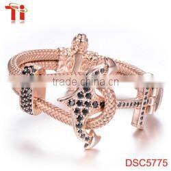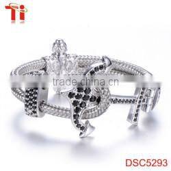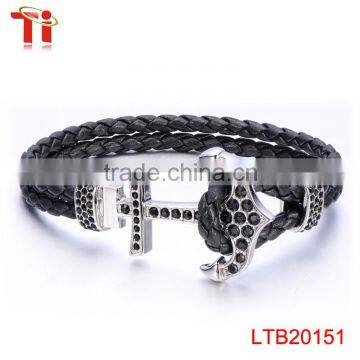 Genuine Cow Leather Silver Color Bracelet Men, Zircon Diamond Jewelry Bracelet for Men, Fashion Steel Bracelet Anchor Customized