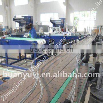 Hot shrinking packing machine consists of seven actuating motor. Through cooperation between the 7 actuating motor to form the product packed with plastic film and several bottles as a group come out from the hot shrinking packing machine.