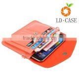 Credit Card Slots Leather Case Cell Phone Cover / Zipper Pouch for Mobile Phone With Handle