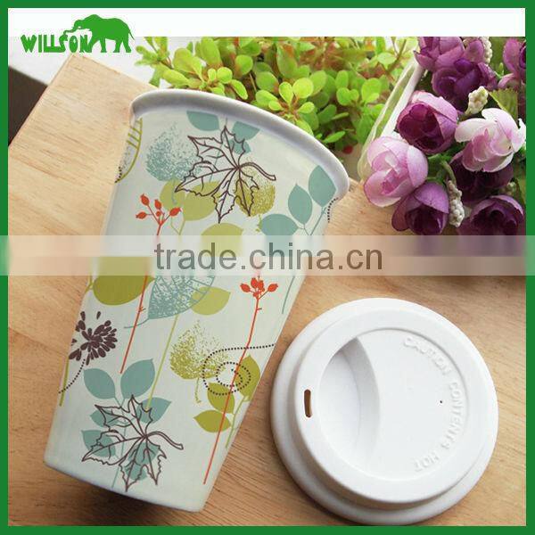 Hot Sale Double Wall Ceramic Mug With Silicone Lid