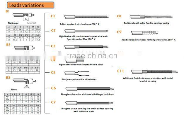 Description: Applying for the air heating, Characteristic of high temperature and high power density , similar as the bolt heater, heaters for the aluminum mold, tube diameter will be ≥Φ 16mm.