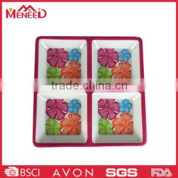 Meneed Flower custom 4 compartments melamine plate, square plastic airline dishes and plates