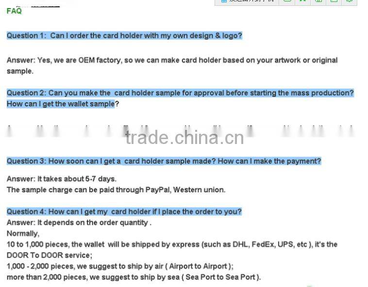 Card Holder Wallet of Card Wallet and Credit Card WalletUS$ 2.5 - 3.5MOQ: 1000 Pieces
