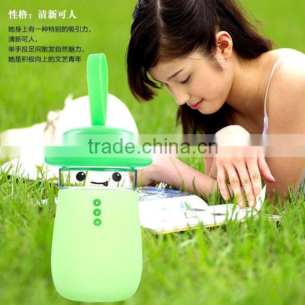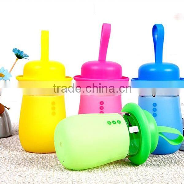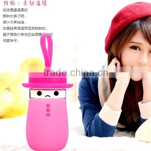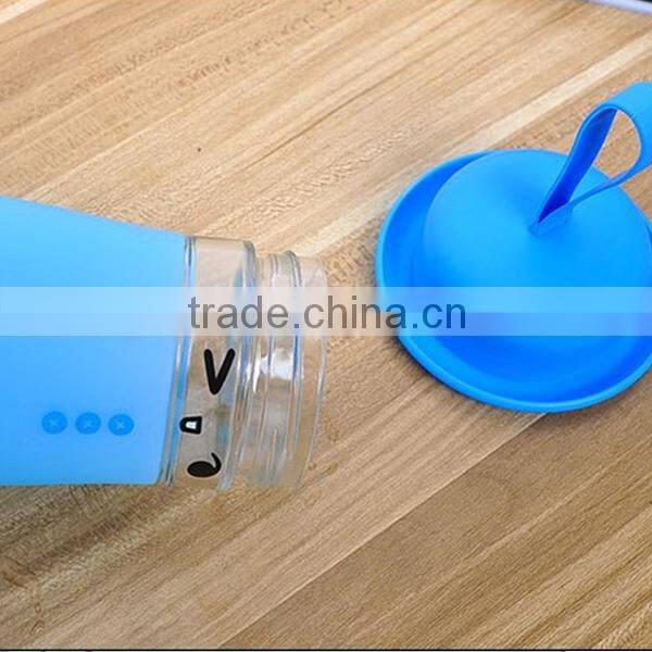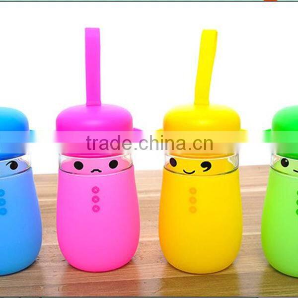 Hot Sale Cartoon Glass Water Bottle Mini Big Bai Silicone Cup Sleeve