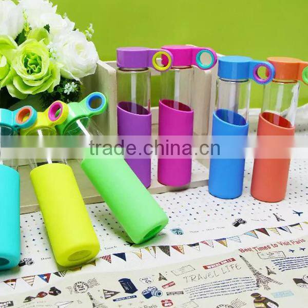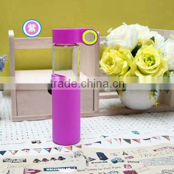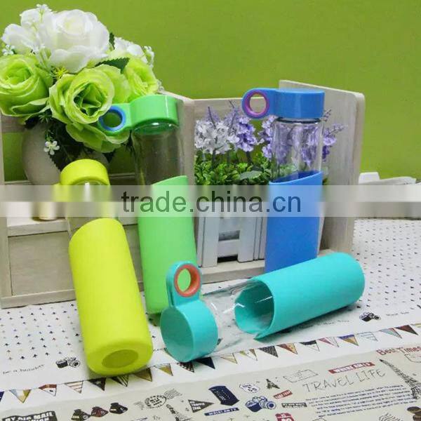 1PC Creative Glass Water Bottle Drinkware Transparent Glass Bottles Silicon Cup Sleeve