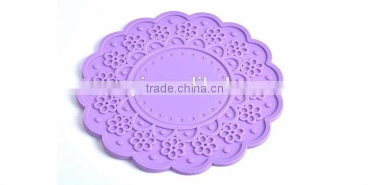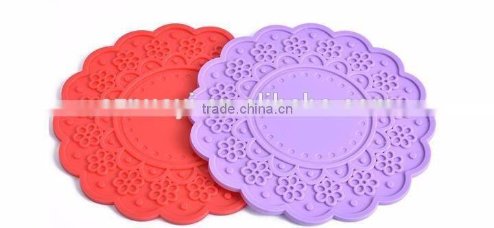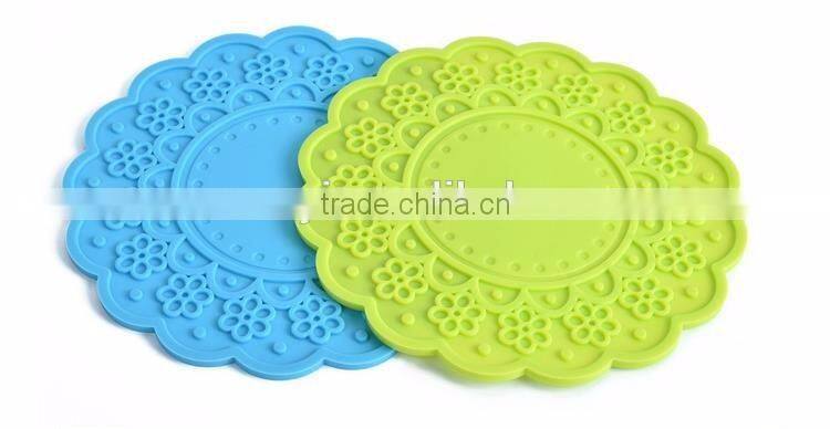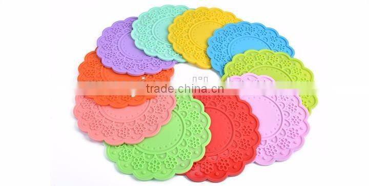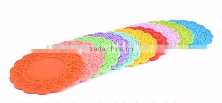 Colorful Flowers Large Size Silicone Placemat Cup Mat Round Heat Insulation Pad Table Placemat