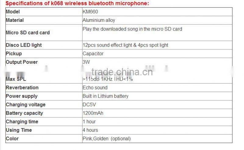 China hot sell K068 Speaker of Bluetooth Wireless Microphone