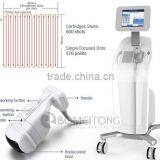 Use high energy ultrasound focusing the treatment position, so that the skin tissue create the thermal, and make high-speed friction cells to stimulate collagen. Such heat effect will not hurt the epidermis, because the treatment fast and direct access to the treatment site within 0-0.5 seconds, without touching the surrounding tissue and can be passed directly to the superficial tendon membrane system (SMAS), so it can be done firm skin while pulling the muscle layer, thin face up to the progressive effect.