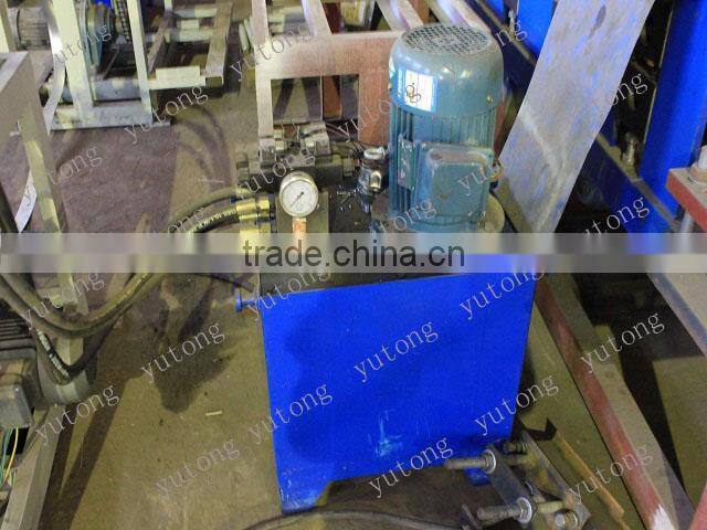 This Roll Forming Machine consist of 5T uncoiler, sheet feeding device, roll forming system, step pressing device, hydraulic post-cutting equipment, run out table, hydraulic station and PLC controller.