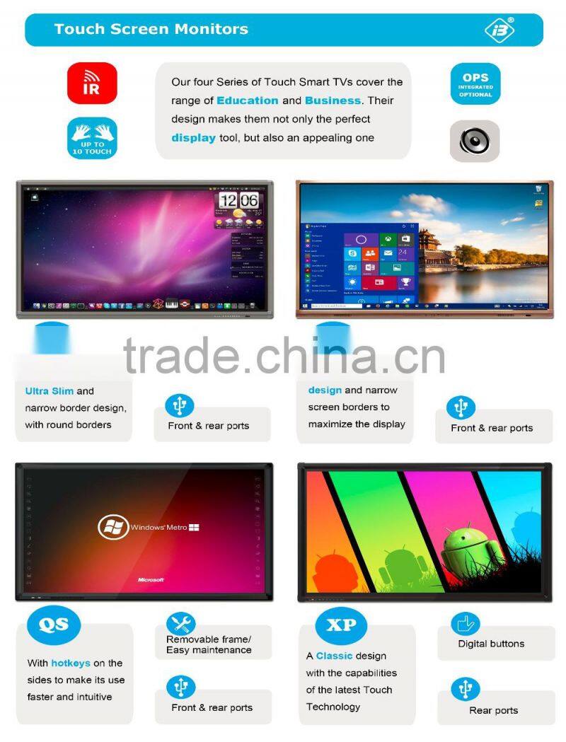 Hot Sales IR Interactive Flat Panel Display 65inch Led Touch Screen Monitor