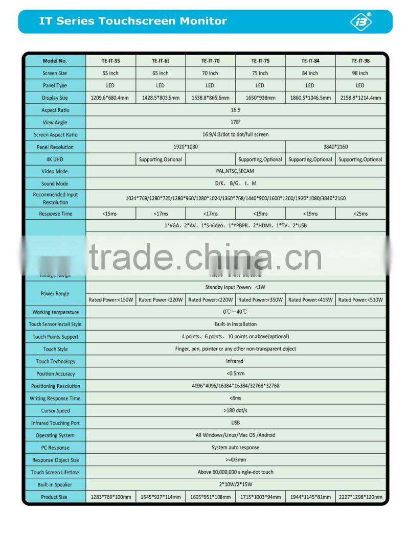 55 65 70 75 80 84 98 Inch Touch TV Products hk Ltd Like Philips Suntech