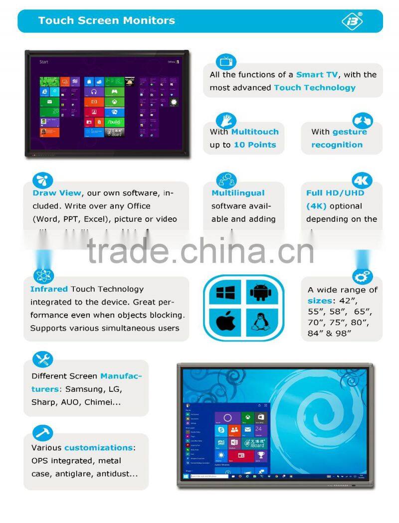 2016 Large Format Touch Screen Monitor 4K High Quality All in One pc Interactive Led Monitor