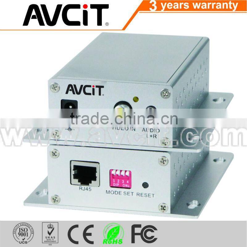 AVC CVBS CAT/TR digital twisted pair transmitter transmit video CVBS) signal up to 150m (the CAT6 cable) through the single CAT5e/6 shielded cable to, and can simultaneously transmit analog stereo audio.