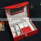 Chinese Factories Wholesale Custom Luxurious Leather Jewelry Box, Red Beautiful Makeup Box