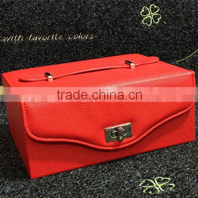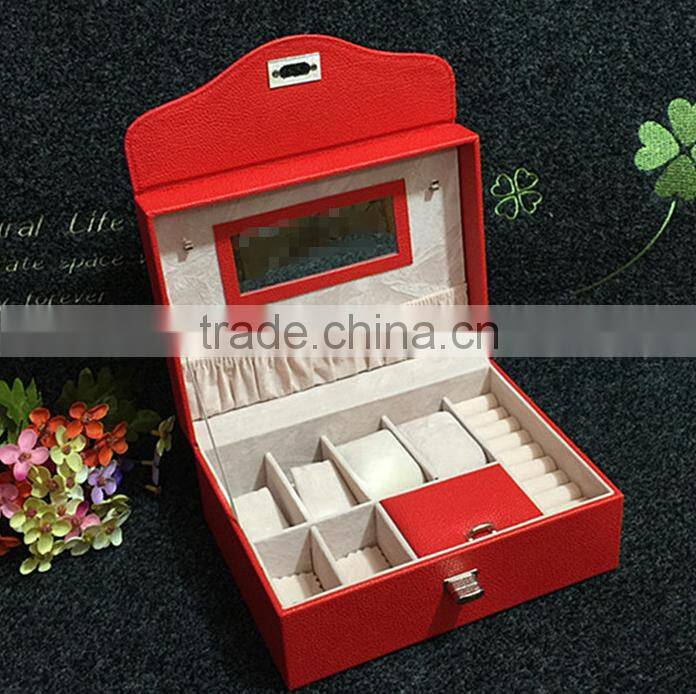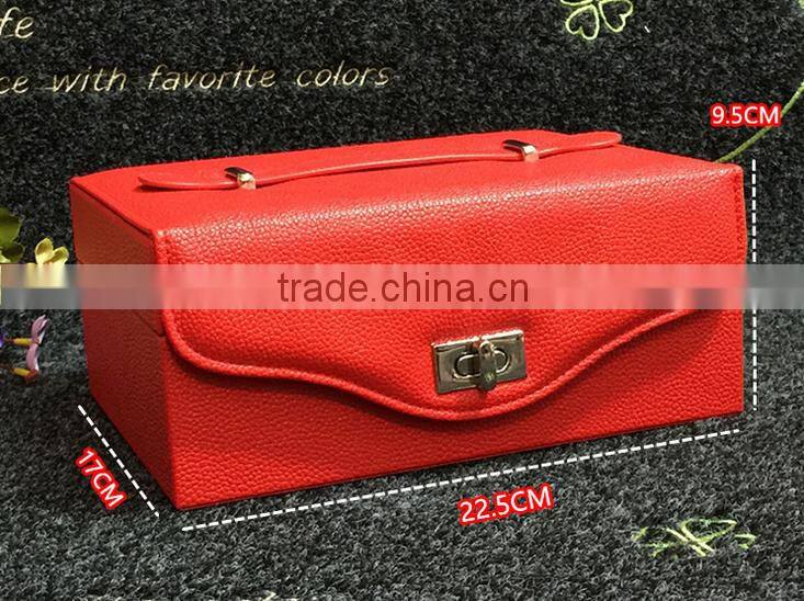 Chinese Factories Wholesale Custom Luxurious Leather Jewelry Box, Red Beautiful Makeup Box