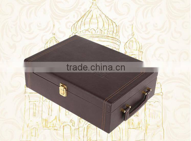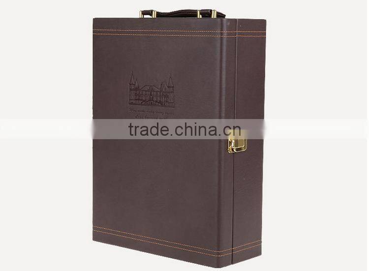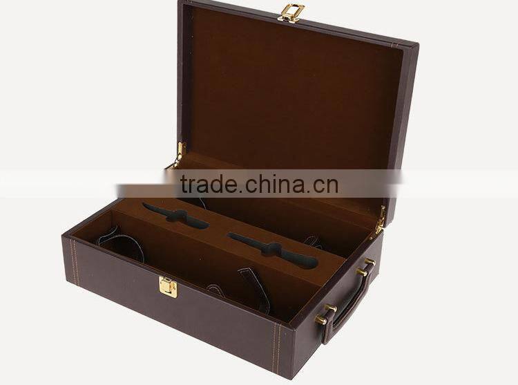 Chinese Factories Wholesale Custom High-grade PU Leather Box 2 Slot Wine Champagne, Dark Brown Gift Box
