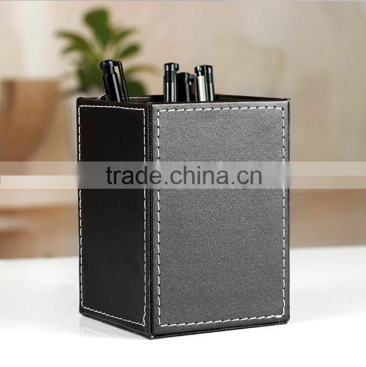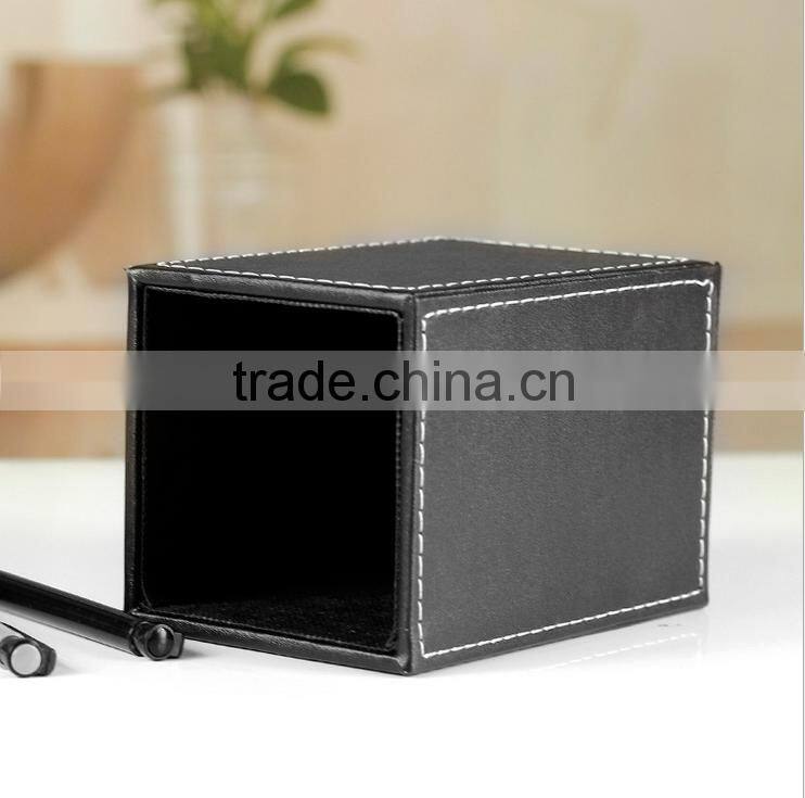 China Wholesale Office Stationery , Luxury Pen Holder, Leather Square Brush Pot