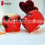 Promote Cute and Red Pig Shaped Ramekin Mug Dessert Ceramic Cup
