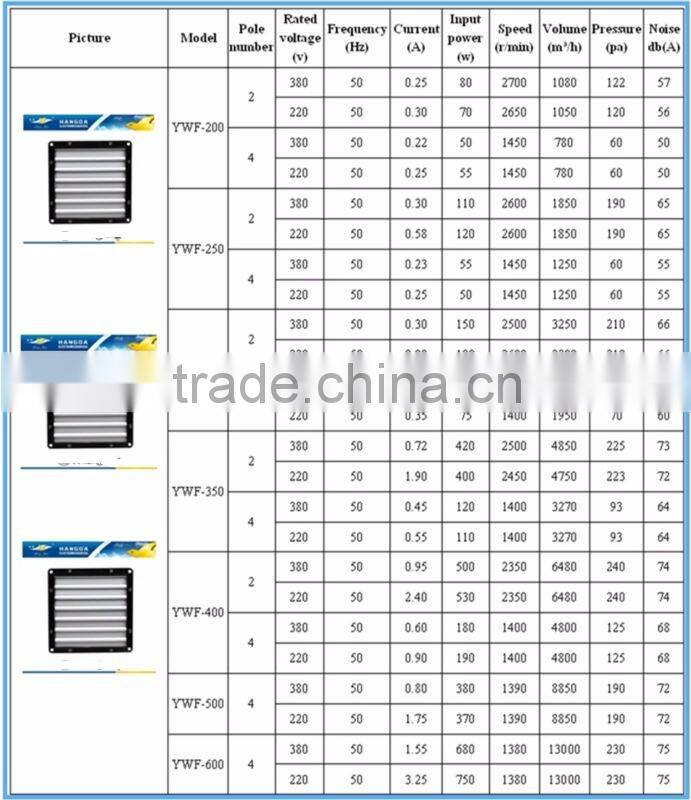 Fan Size :200mm 250mm 300mm 350mm 400mm 450mm 500mm 550mm 600mm