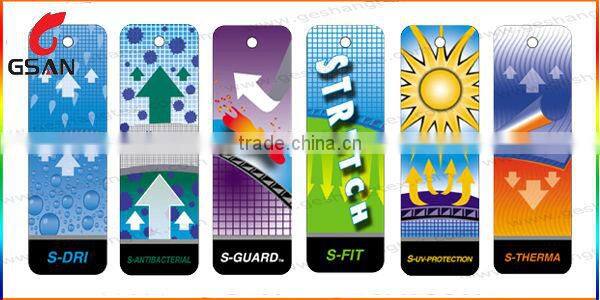 antibiosis, UV proof, DWR, water-dirty-oil proof etc.