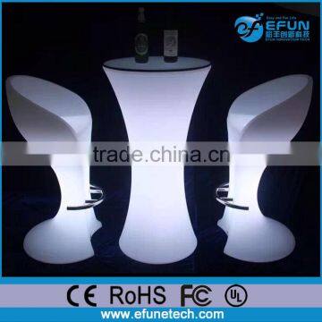 Led bar chair is made of eco durable plastic PE. It is CE,ROHS approved, can be used both indoor and outdoor. With a remote controller, you can turn on the led light of all the plastic LED furniture within 15 meters and change color and brightness as you like.